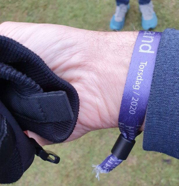 Folk er fornuftigt klædt på. Fleece, dun, Gore-Tex. Skuldertasker, halstørklæder, huer i juni. Ser INGEN band-T-shirts.