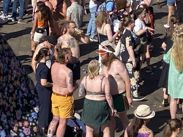 Der er ikke ret meget musik, jeg gider at høre (igen). Det her er bare en velorganiseret, kæmpe byfest. Tæpper på græsset, høj promille, ”noget, vi kan danse til”, ”noget vi kender” og en stor fuckfinger til nedlukningsårene.