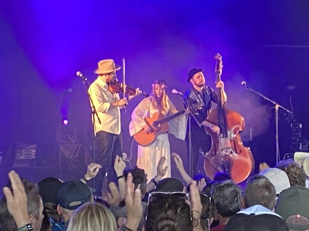 18.52, Smølle: Sierra Ferrell hjulpet af mild, solrig hygge uden for Pavilion. Der er mange hernede, og jeg forestiller mig ikke, at det er navnet, der trækker. Måske fordi jeg selv først hørte det for 10 minutter siden. Har set et par træt udseende blogbrødre gå ind … og én skynde sig væk.