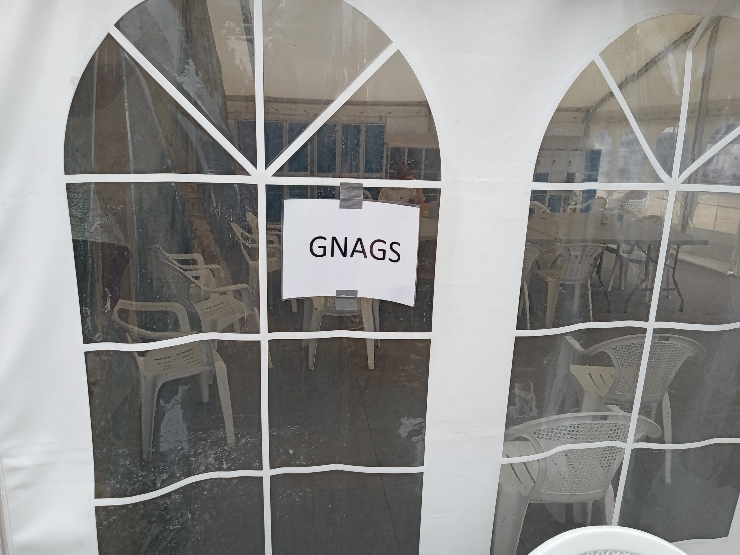13.46, Snab: Jeg ved ikke, hvad der foregår i det her telt dybt inde i backstage-området, men jeg kan godt lide tanken om, at Gnags måske sidder på spring, hvis der kommer et afbud. #GnagspåOrange