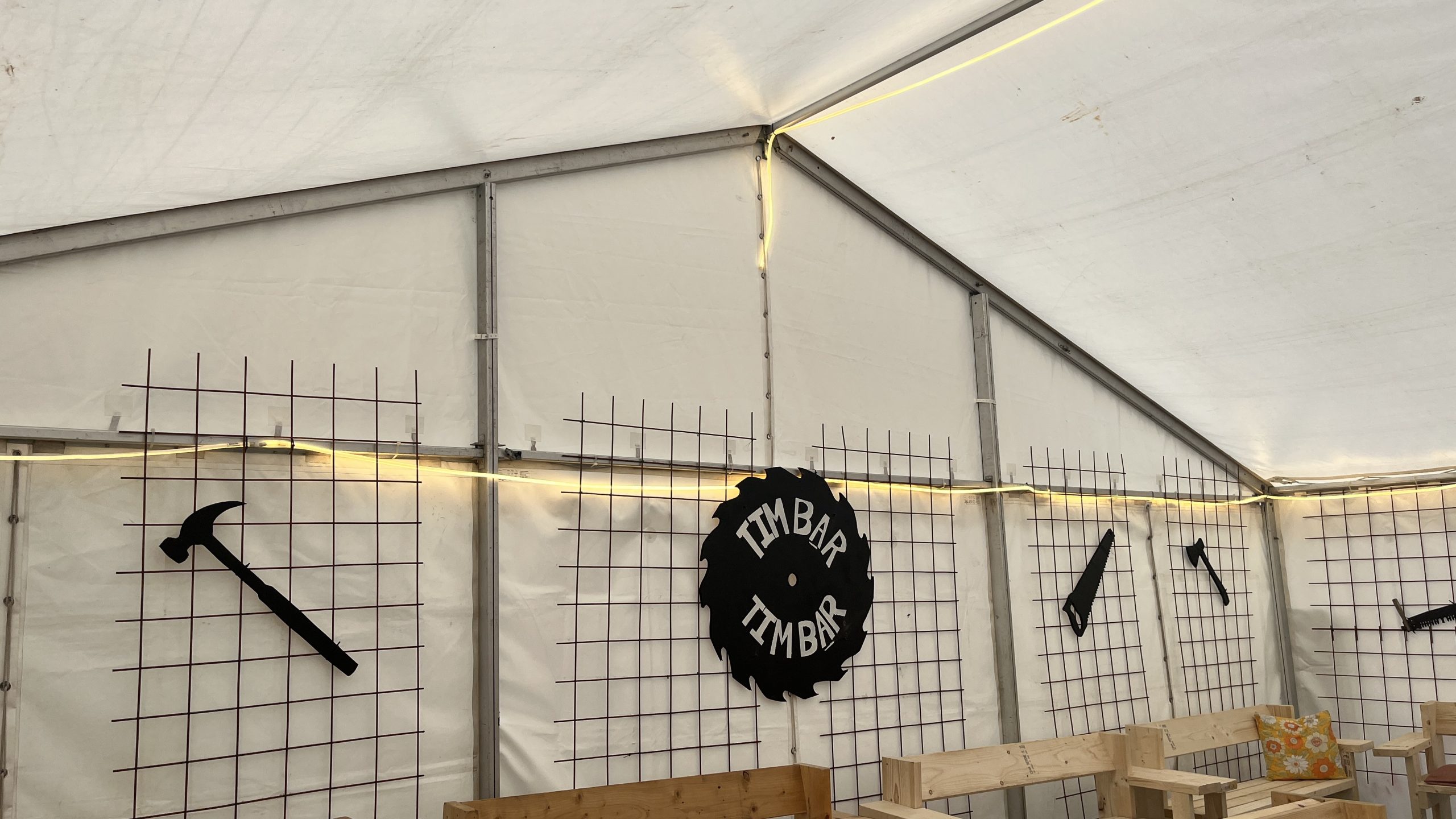 16.16, Smølle: Drinks på en bar, der er lavet af planker og har save og høvle på væggene. Den hedder TimBar. Forestiller mig, at ejeren må hedde Tim.
